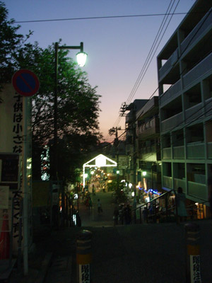 千駄木側から商店街に入り、日暮里側に抜けると階段があり、